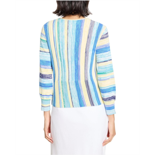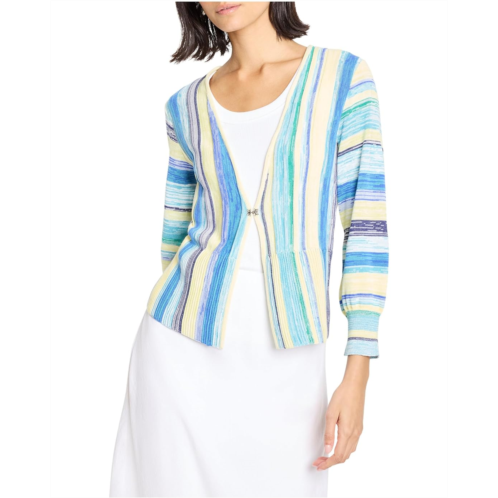 Laid-back, yet elevated. With its ribbed cuffs and a touch of fullness at the sleeve, the NIC+ZOE Coast Crush Cardigan exudes an effortless charm inspired by life on the water. The front closure features a hook & eye that splits and splays open for a relaxed, flowing look. Crafted from space-dye yarn, the knit-in stripes create a cool, multidimensional effect, while the matching tank's same coloring and stitch make this cardigan perfect for wearing as a set. Featuring a flattering V-neck, 3/4 sleeves, and a regular fit that sits comfortably at the hip, this midweight jersey and reverse jersey sweater knit is versatile enough for any occasion.
