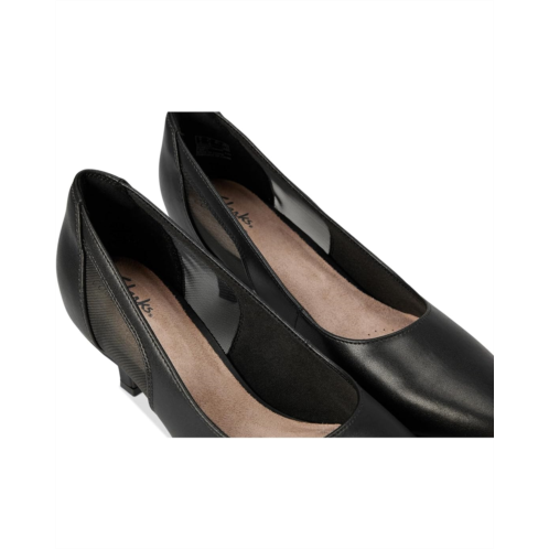 With its cut-out mesh panels and low kitten heel, Clarks Kepley Cora combines a super-sleek look with effortless everyday comfort. Crafted from premium leathers in classic, versatile colourways, it utilises Clarks Collection's signature foam footbed to ground every move in plush support - from workday socials to dressy weekend events. It features a premium leather upper with cut-out medial mesh panels and breathable microfiber footbed lining.
