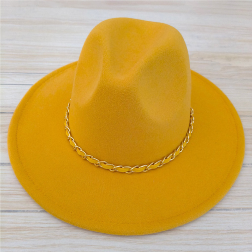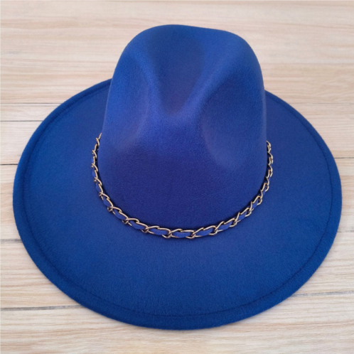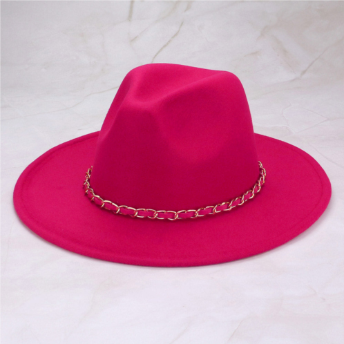 [US] FASHNZFAB faux leather braided chain band pointed fedora hat