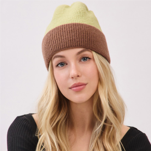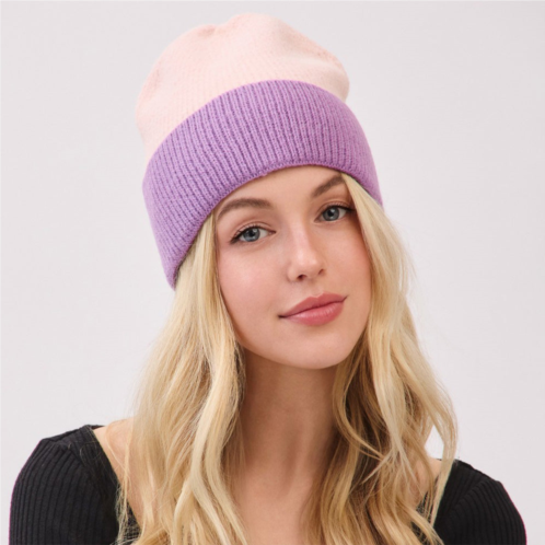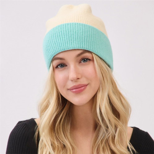 [US] FASHNZFAB two tone soft fuzzy knit winter beanie hat
