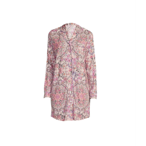 [US] Johnny Was womens neena floral print notch collar knit chest pocket long sleeve nightshirt…