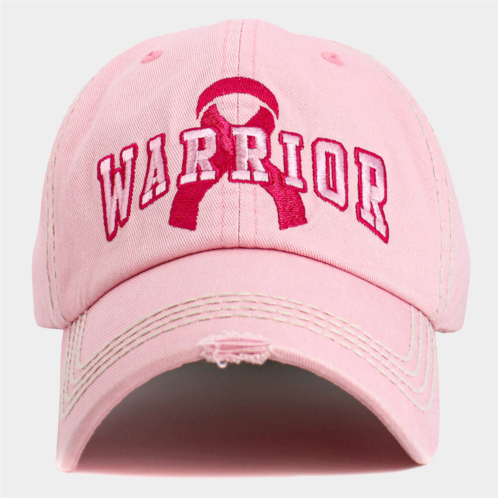 [US] FASHNZFAB pink ribbon warrior embroidered accented vintage baseball cap