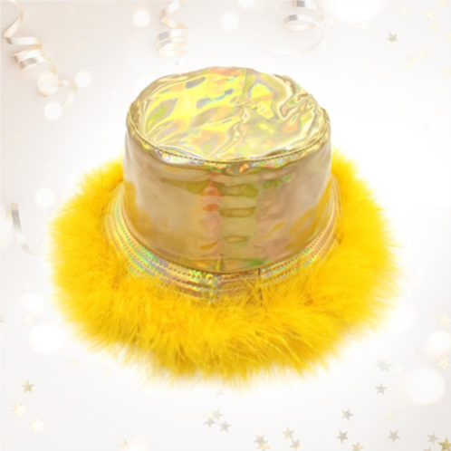 [US] FASHNZFAB faux feather trimmed hologram bucket hat
