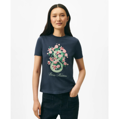 [US] Brooksbrothers Womens Lunar New Year Cotton Embroidered Bouquet Snake Motif T-Shirt