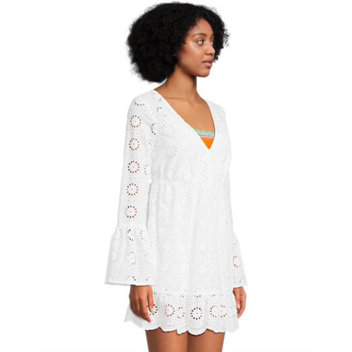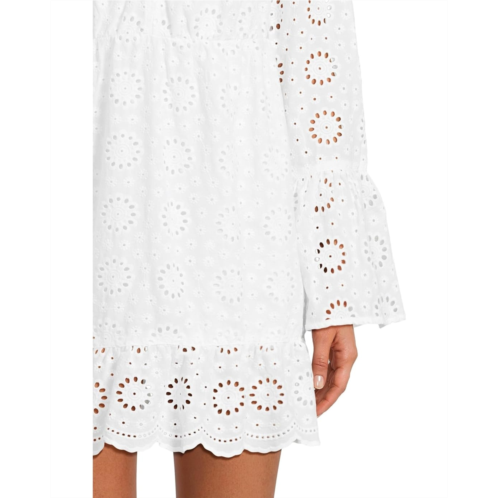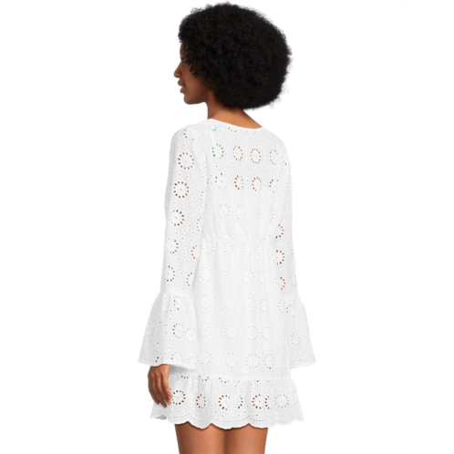 Stand out in unique style wearing the Beach Riot Delaney Dress. This dress features V-neckline, long bell sleeves, pull-on style, and allover eyelet detailing.