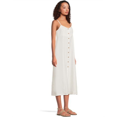 Make your fashion choice as unique as you are by wearing Sanctuary Wilder Linen Dress. The pull-on style dress features a sweetheart neckline, adjustable spaghetti straps, stylish gold-button detailing on the center-front, and a midi-length silhouette.
