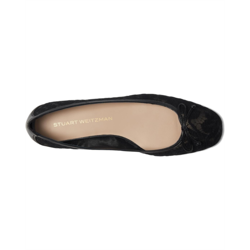 Ballerina grace meets modern ease in the Stuart Weitzman Arabella Ballet Flat - mesh and leather upper perfection meets comfort. Luxe mestizo leather and gala lining caress your feet, while the EVA insole supports every step. Slip-on ease, adorned with a chic bow, and crafted with a round toe for timeless elegance.