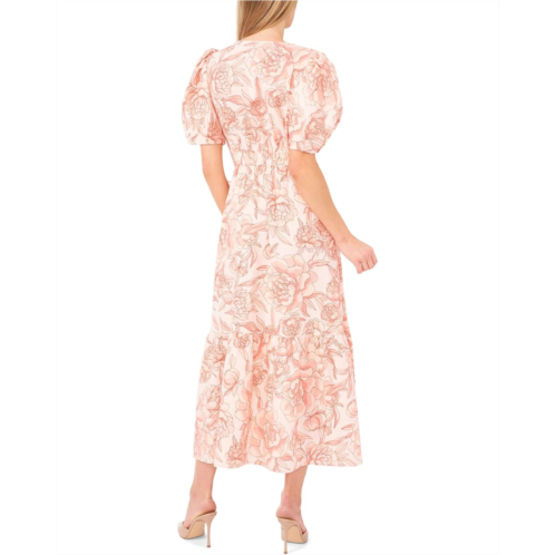 [US] CeCe Printed Linen Puff Sleeve V-Neck Maxi Dress