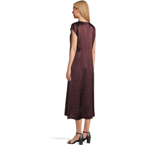 [US] Womens Eileen Fisher Textured Satin V-neck Dress