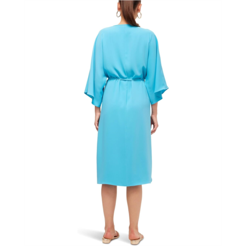 Beyond the ordinary dress: The Trina Turk Topsin Dress. Designed to turn heads, this pull-on beauty drapes gracefully below the knee, offering the perfect balance of comfort and elegance. The deep V-neckline adds a touch of allure, while the quarter-length flared sleeves bring a playful, flowy charm. Accentuate your silhouette with delicate spaghetti ties at the waist, creating a cinched, tailored look that flatters every figure.