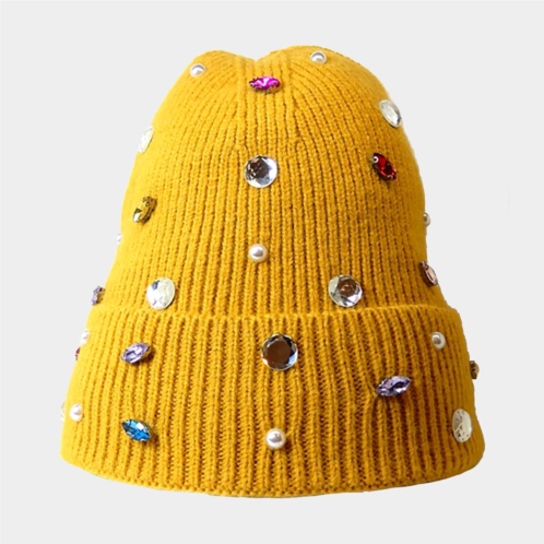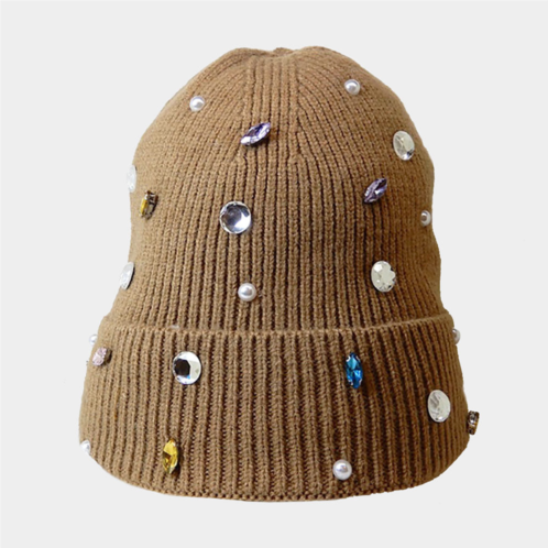 [US] FASHNZFAB pearl jewel embellished fleece lining knit beanie hat