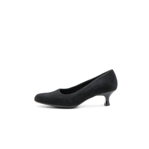 Don't be deceived, these heels are comfy as can be.A perfect combination of style and comfort, designed with a pin dot embossed nubuck upper and a sophisticated low kitten heel. Crafted from premium leather, this heel stands at 1.75 inches, offering both elegance and the excellent arch support you need. Tailored for women with a consideration for a narrow fit, these shoes feature a round toe for added comfort.