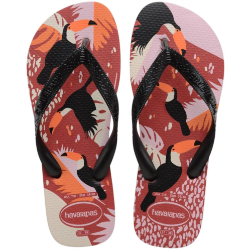 - Slip on the easy-going and vibe-matching Havaianas Top Tropical Vibes Sandals with a classy toucan print complementing the water-resistant flip-flop design.