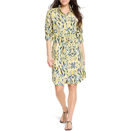Meet the new shirt dress silhouette, NIC+ZOE Sunny Skies Sydney Shirt Dress, paired with our cheery Sunny Skies print: the perfect bringer of good vibes for your everyday style. Made from an easy linen blend for breathability, with more of the drape, utility details like a button front closure, shirt collar, roll tab sleeves, two button-through flap pockets, and an allover print. Love the uneven shirt tail hem that's slightly shorter at the sides to create some unique shape.