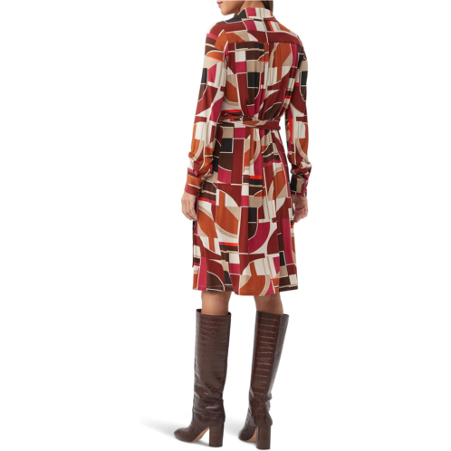 The Trina Turk Makeba Dress is a wrap dress with a collar V-neckline, straight hem, and long sleeves with buttoned cuffs. This printed dress is crafted from jersey fabric that provides an effortless feel to this fun look. The tie waist closure of the dress offers a flattering fit. Styled with an allover geometric print, this wrap dress is perfect for parties and events.