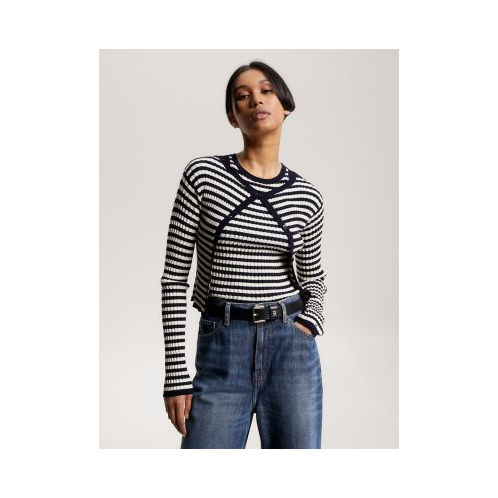 Tommy Hilfiger women's sweater. A mini cable knit weave dresses this cardigan, styled in a slim cropped fit.