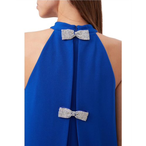 Shine with elegance and timeless sophistication wearing the Trina Turk Tapa 2 Dress. It features a high halter neckline with sleeveless design and rhinestone embellished bows at the back pleats.