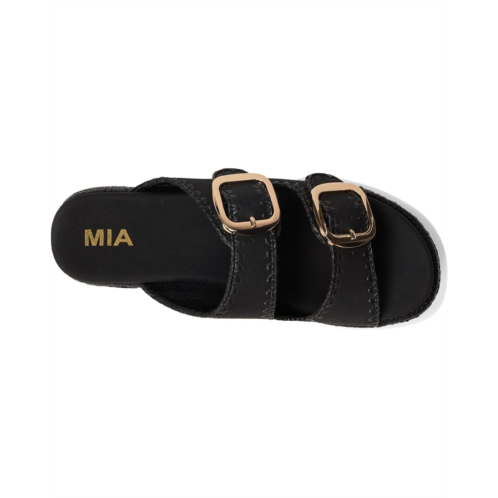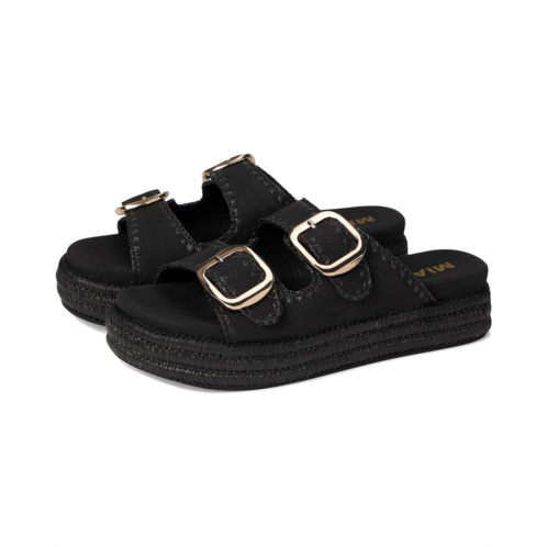 The double strap sandal of your dreams. The MIA Mieko features woven detail with vegan leather and signature anatomical footbed. Offering slip-on ease, the platform footwear features buckle accented straps and peep toe silhouette.