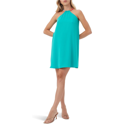 Put on the Trina Turk Bonbon Dress when you want to make a statement. This modern dress takes inspiration from a retro style. This sleeveless shift shape has a flattering halter neckline with a contrast tie that gives a bold look and drapes nicely for a polished yet easy vibe. Its mid-thigh length means it's fresh and flirty daytime, sunny brunches, rooftop soirees, or hop-on-the-plane spontaneous. Crafted for convenience, the pull-on design lets you slip it on easily without any fuss, so you can enjoy all the moments hassle-free.