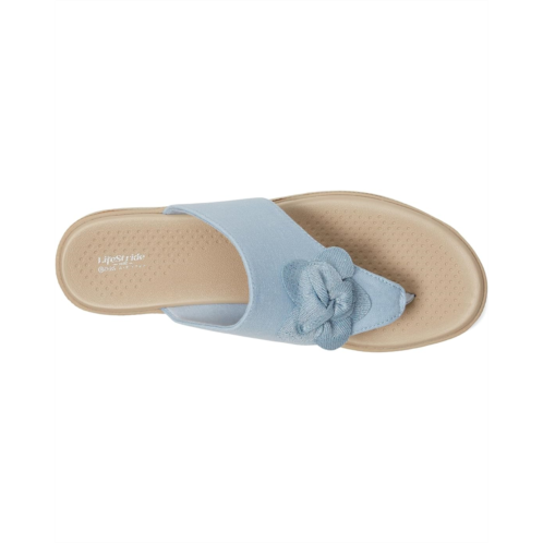 Bloom into comfort, bloom into style-wherever life takes you wearing LifeStride Bloom Thongs. Crafted with a soft fabric upper, these breezy slip-ons keep your feet feeling fresh and fabulous all day long. The T-toe design adds a sleek touch, while the textile lining and insole offer a cozy, cushioned feel for ultimate wearability. Whether you're strolling on the boardwalk or heading to brunch, the lightweight synthetic outsole ensures stability with every step. Slip them on and embrace carefree confidence, because style should always be this easy.