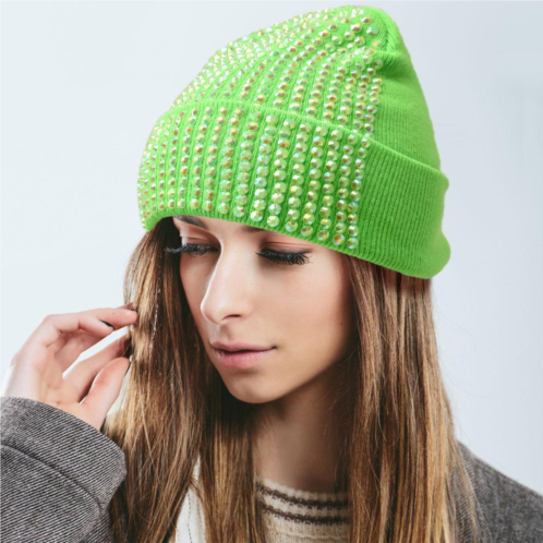 [US] FASHNZFAB single sided studded knit beanie hat
