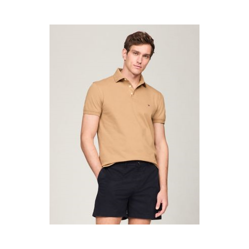 Tommy Hilfiger men's polo. What we do best. Our slim-fit polo is made from premium cotton in a pique weave, known for its subtle, textured finish that adds dimension and breathability. The medium-weight stretch fabric strikes the ideal balance of structure and softness, offering long-lasting comfort.