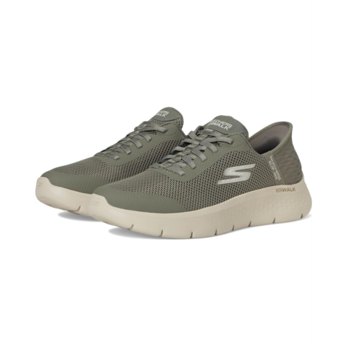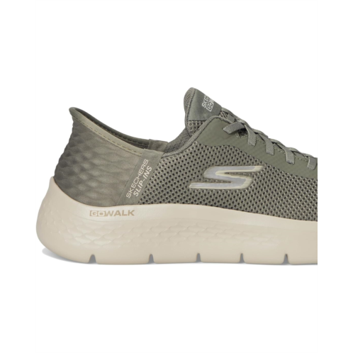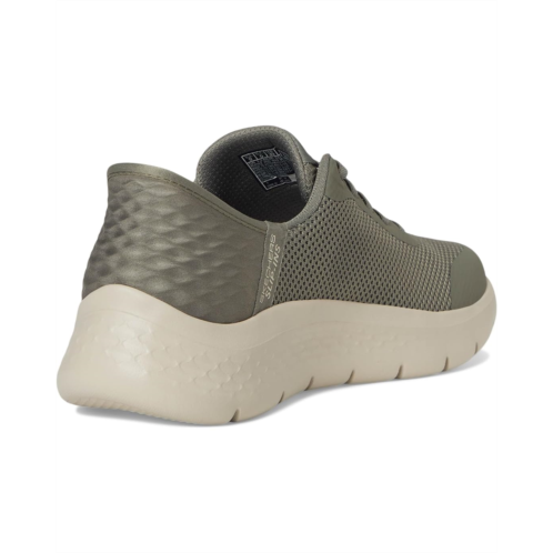 - Take every step with improved style and comfort wearing SKECHERS Performance Go Walk Flex Hands Free Slip-Ins - Grand Entry that feature a round toe shape and exclusive heel pillow holds your foot securely in place. The sneakers are crafted with a athletic mesh upper, fabric lining, and air-cooled memory foam. The Skechers Hands Free Slip-ins offer an easy fit and the lace-up closure gives a customizable fit.