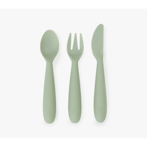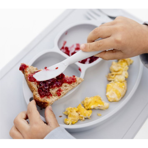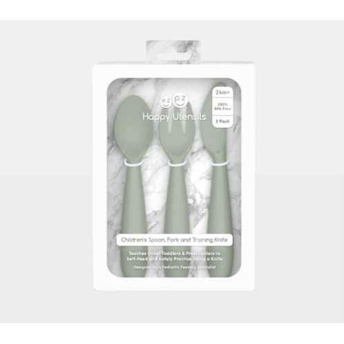 Learning self-feeding skills with utensils is an important developmental milestone for your little one. The Happy Utensils are designed to help older toddlers and preschoolers independently eat with a spoon and fork and safely practice using a knife (spreading and cutting).