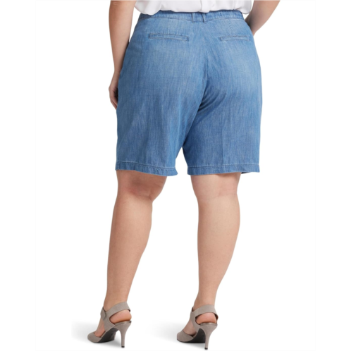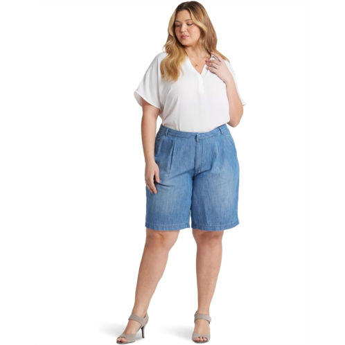 Show up for the next casual weekend with friends wearing NYDJ Plus Size Bermuda Shorts in Corfu. With an easygoing shape created by pleats and wider legs, they're made of soft lightweight denim with an airy, comfortable feel. A high waist cinches their silhouette, keeping them flattering as well. It features a zipper with hook-and-eye closure, belt loops, two angled slash pockets on the front, two welt pockets on the back, pleated front details, and a knee-length silhouette.