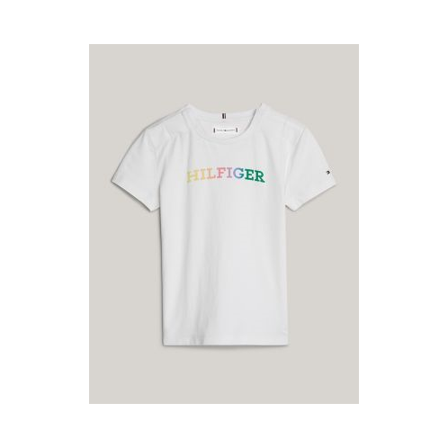 Tommy Hilfiger girls' T-shirt. A colorful Hilfiger monotype logo brings rainbow brightness to this cotton tee, ideal for park playdates or chilling at home. Part of our Adaptive Collection, designed for ease of dressing in classic Tommy style.