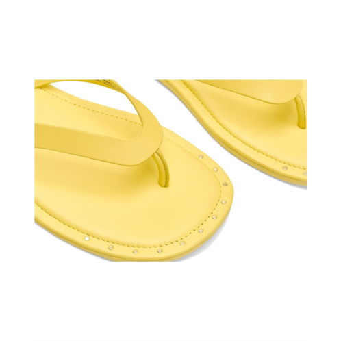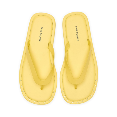 Step into paradise wearing the Free People Sona Thong Sandal. Crafted from leather upper, lining, and insole, this pair of footwear features open round toe, slip-on style, backless design, thong straps, stud details outlining footbed, and flat sole.
