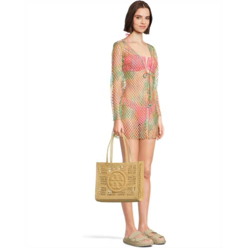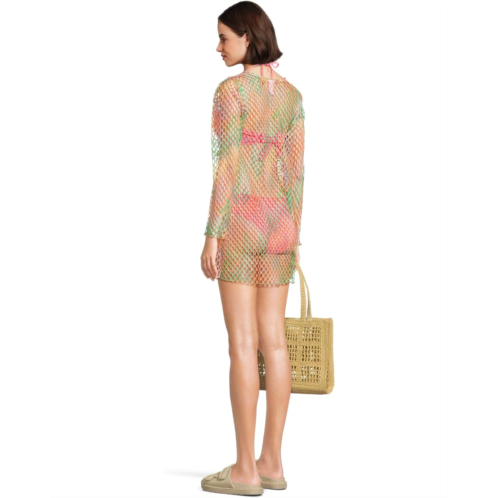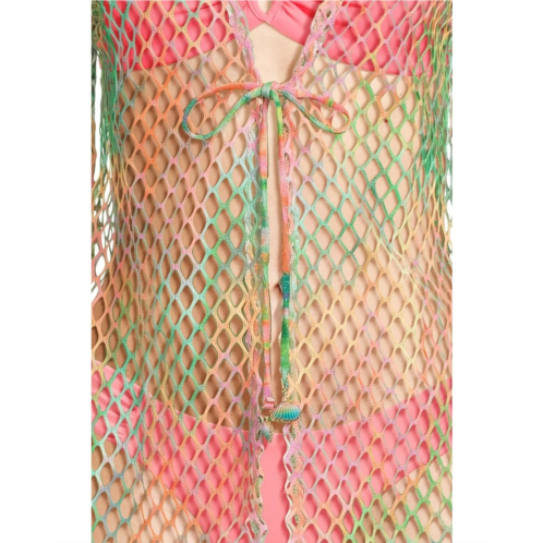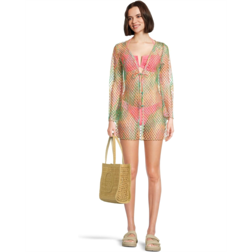 Get ready to rock your beach vacation wearing the stylish BECCA Mirage Fishnet Tunic. The open-front tunic features an allover fishnet construction, shell charms on the ties, and slit openings on the side hem.