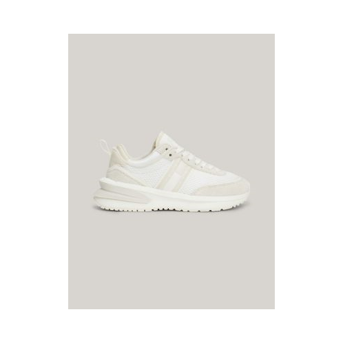 Tommy Hilfiger women's sneaker. These understated lace-up sneakers feature tonal mixed textured panels and a padded TJ badge on the side. Part of our Tommy Jeans collection.