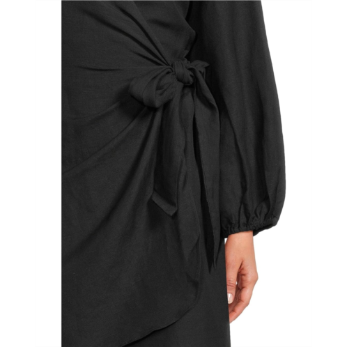 Get yourself ready for the beach in absolute comfort and style wearing Tommy Bahama Stamped Lucia Wrap Dress. The V-neck dress features long bracelet sleeves with elasticated cuffs, a wrapkorea front with a tie-up detail, and an above-the-knee silhouette.