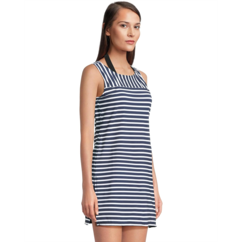 Perfect for seaside relaxation or boardwalk strolls, the Tommy Bahama Coastline Stripe Hi Neck Romper combines the comfort of inner shorts with the elegance of a dress. This romper offers a high-neck silhouette with a back tie closure for an effortless drape.