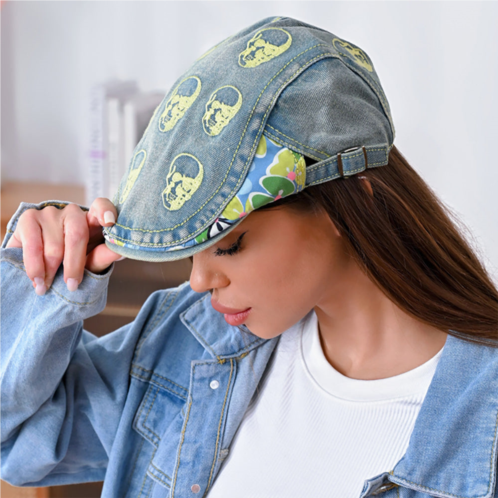 [US] FASHNZFAB skull flower printed newsboy hat