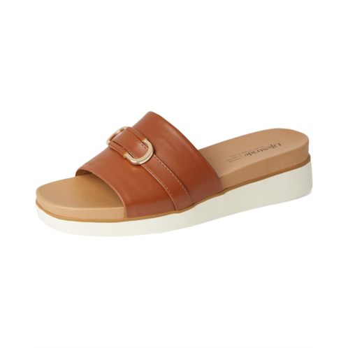 Effortless chic, redefined: LifeStride Genevieve effortlessly blends casual comfort with refined style. These chic slide sandals are designed with faux leather or woven fabric, a soft square open toe, and a slip-on fit that makes getting ready a breeze. The metallic ornament detail adds just the right touch of glam to elevate any outfit, from laid-back weekends to evening strolls. Crafted with Soft System comfort technology, the foam insole and synthetic rubber outsole provide unbeatable cushion, support, and flexibility. The traction sole ensures stability with every step, while the partially recycled linings offer eco-friendly appeal. These slides are the perfect blend of fashion and function, ready to complete your closet essentials.