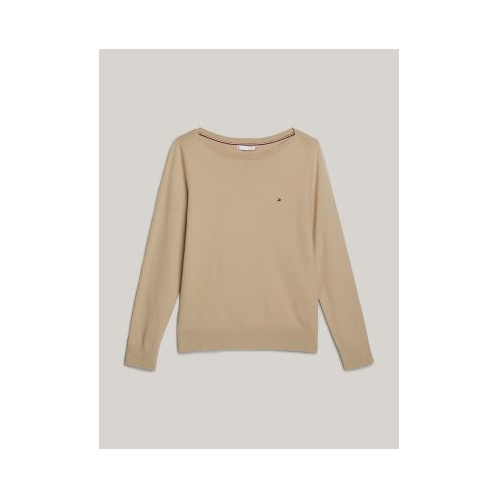 Tommy Hilfiger women's sweater. This flattering sweater is perfect for smart casual styling, thanks to its elegant boatneck and understated branding at the chest. Part of our Adaptive Collection, designed for ease of dressing in classic Tommy style.
