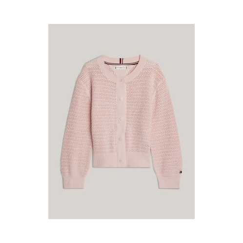Tommy Hilfiger girls' sweater. Balloon sleeves and a boxy fit give this crochet cardigan a versatile look that can be dressed up or down. Part of our Adaptive Collection, designed for ease of dressing in classic Tommy style.