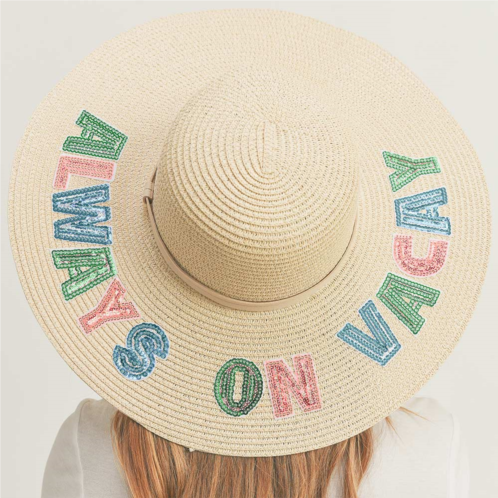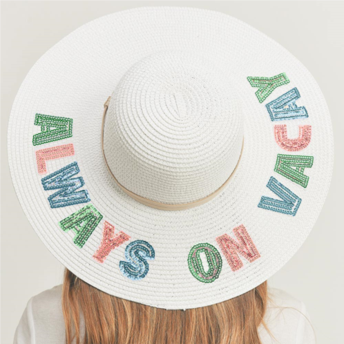 [US] FASHNZFAB always on vacay sequin message straw panama sun hat
