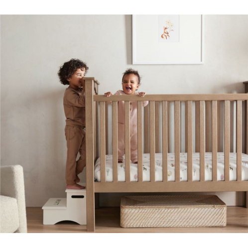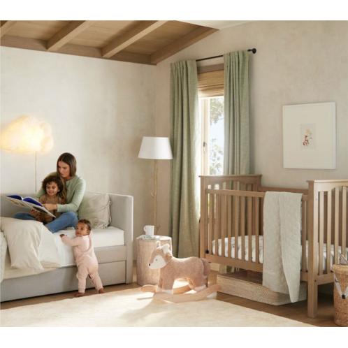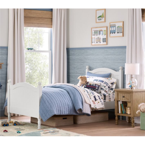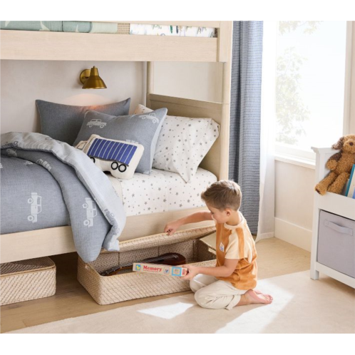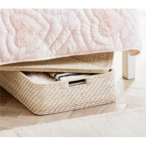 Kids can easily declutter their room by stowing toys, books and off-season clothing with this stylish under-the-bed storage solution. Woven around a sturdy metal frame, the whitewashed rattan complements any decor scheme. A lid keeps dust out and contents hidden, while large cutout handles are easy for tiny hands to grasp. Slight variations in color and finish are hallmarks of time-honored weaving techniques.