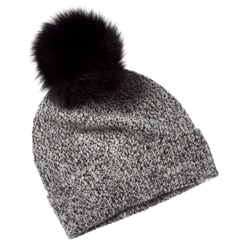 Introducing the sofia cashmere Marl Cashmere Hat, a luxurious addition to your winter wardrobe. This exquisite hat is crafted with 100% cashmere and adorned with real fox fur for a touch of elegance. The black and ivory marl design adds a stylish twist to this classic accessory. Measuring at 8 inches long and 9.5 inches wide, this hat is perfect for keeping you warm and stylish all season long. Dry clean only recommended. Imported from the finest materials, Sofia Cashmere is known for its exquisitely crafted cashmere apparel. Add the Sofia Cashmere Marl Cashmere Hat to your collection today and elevate your winter look.