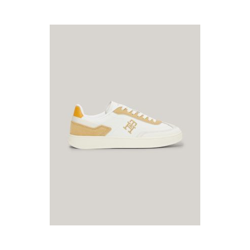 Tommy Hilfiger women's sneaker. Keep it casuala combination of grained leather, smooth suede and webbing details brings an exciting mix of textures to these timeless sneakers.