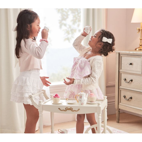 Expertly crafted from ceramic with hand-painted gold trimmings and precious pink blooms, this glossy set turns their afternoon tea party into the most delightful event. The elegantly styled teapot, cups, saucers and spoons encourage gathering with friends for hours of imaginative play. Designed exclusively with lifestyle brand LoveShackFancy.