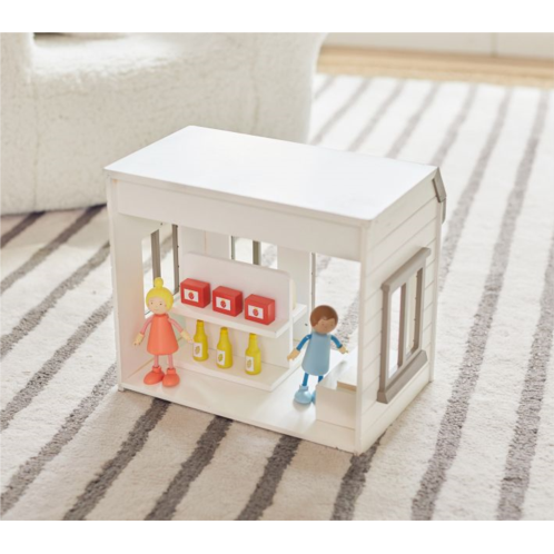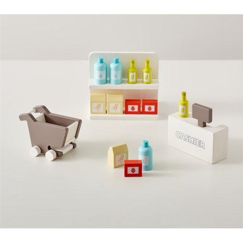 Let them set up their Market Dollhouse in style with our fully equipped accessory set. Crafted of eco-friendly wood and featuring groceries, a grocery cart, doll, fully stocked shelf and cashier station, it offers everything they need to make their marketplace come to life.