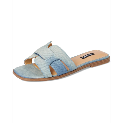 Step lightly in style wearing the Nine West Germani. Crafted from leather upper, man-made lining, this pair of sandals features open round toe, slip-on style, flat heel, and brand detailing on the footbed.