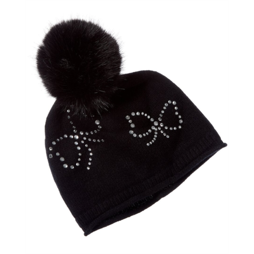 Introducing the Sofia Cashmere Heatset Cashmere Bow, a luxurious addition to your winter wardrobe. This exquisitely crafted accessory features a stylish heat set design in timeless black. Made from 100% cashmere, this bow measures 8 inches long and 9 1/4 inches wide, making it the perfect statement piece. Complete with a faux pompom and imported detailing, this hat is sure to elevate any outfit. Dry clean only to maintain the quality of this beautiful piece. Perfect for adding a touch of sophistication to any cold-weather look.