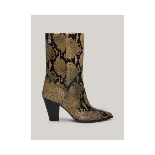Tommy Hilfiger women's boot. Stand out from the crowd in these mid boots, featuring Western-inspired heels and snake-embossed leather uppers for extra elegance.