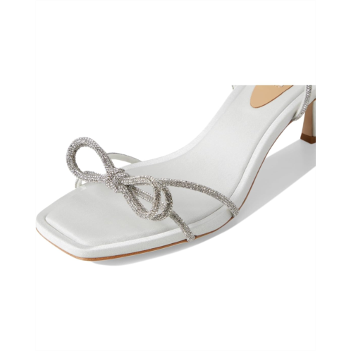 The Badgley Mischka Dandelion defines glamor at every step. This square toe pair features silk upper with rhinestone embellishments and buckle adjustable ankle strap closure.