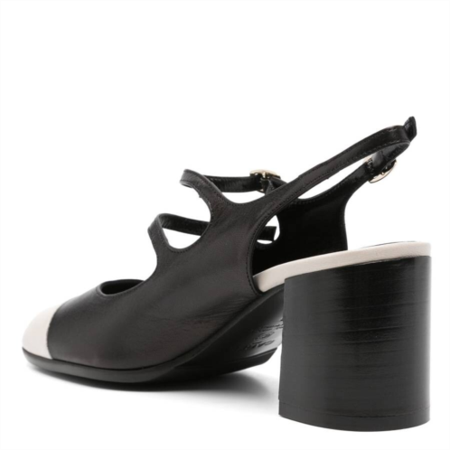 Carel Ladies Heels. SKU: 332466-BLACK/BEIGE. Color: Black/Beige. Carel Ladies Black / Beige Block Heel Sandals. Crafted from leather, this pair of pumps features a color-block panel design, an almond toe, and a contrasting toe cap. They include a logo-embossed insole, leather lining, and an ankle strap with a buckle. Two additional straps with buckles complete the design, set on a 60mm square midi block heel. Made in Italy. Please visit the brand website for sizing information.